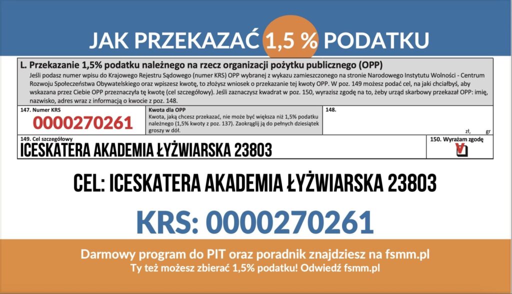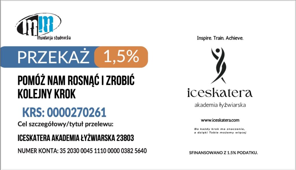 ICEskatERA zbiera 1,5% podatku, które przeznaczamy na szkolenie, rozwój i wsparcie naszych zawodników.
